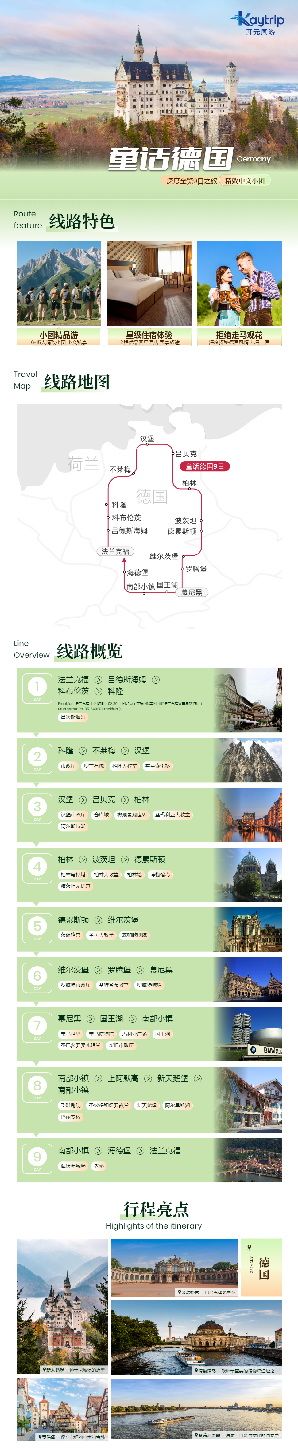 路线名称:童话德国▪深度全览9日之旅【精致中文小团】< 法兰克福上下 >